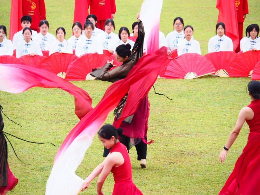 中药与康复系300余名同学以“八段锦”等元素融合舞蹈,用优美的肢体语言演绎活力。将体育精神与艺术表达完美融合,为开幕式画上精彩句号。
